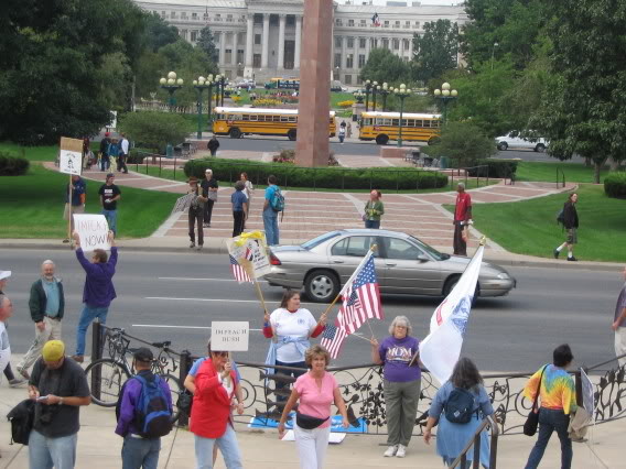 That was a funny freep, and the reason why is because the Anti-War group was a bunch of pasty white liberals from Boulder carrying their UN flags and dressed all hippie-ish, and our side was a bunch of veterans, dressed in military garb, carrying american flags and the diversity of our group made for a very exciting rally.