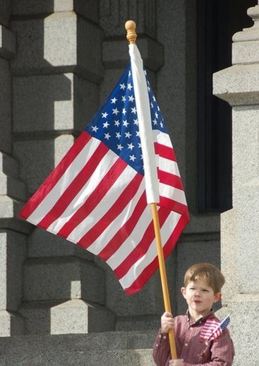 Ben at Feb teaparty holding the flag