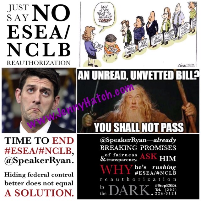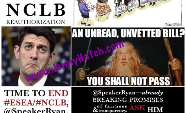 So parents and grandparents, I would encourage all of you to get off your asses and make a few phone calls and send a few tweets TODAY, because Fed Ed, including the most noxious portions of No Child Left Behind, is about to be entrenched in American Schools for THE NEXT SEVEN YEARS!
