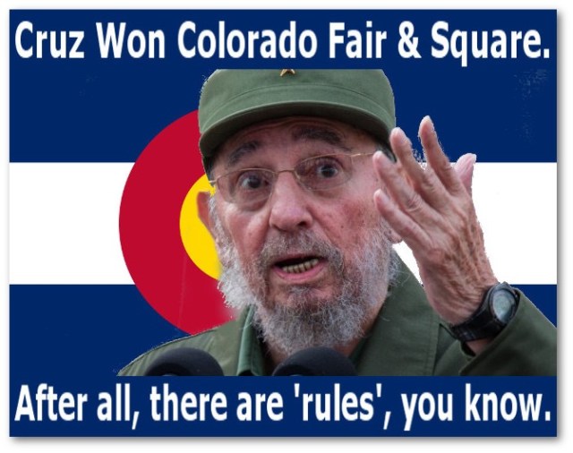 I was voted to be a delegate by my caucus at the GOP Boulder county convention in 2012, and after two days of reading everything I could find about what just went down at the Colorado State Convention this explanation by Ryan Call rings true. Legally Cruz won the delegates per party rules but millions of Colorado voters were left out of the Primaries because the GOP Elites are a bunch of control freak goobers.