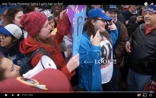 This woman tried to light a Trump supporter on fire…and other acts of violence against Trump fans this past weekend