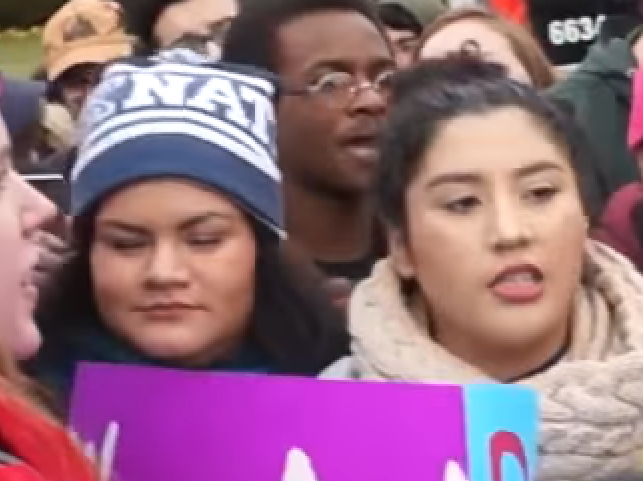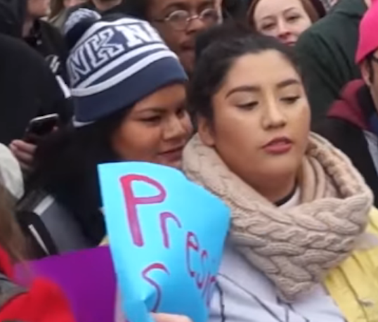 On Friday, the high school student wore a bright blue Trump hat and a T-shirt with a picture of the president in a red Make America Great Again hat, giving a thumbs up. She and a group of friends waited for over three hours to get into the National Mall to witness Trump’s inauguration and missed the speeches because of protesters blocking their entrance. But she was still beaming.”