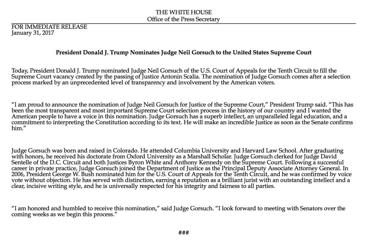 President Trump Selects Neil Gorsuch As Choice For The Supreme Court: https://t.co/Xz7zXpxtCd via @YouTube