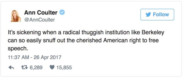 I’m so sorry Berkeley canceled my speech. I’m so sorry YAF acquiesced in the cancelation. And I’m so sorry for free speech crushed by thugs.