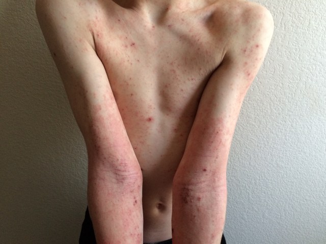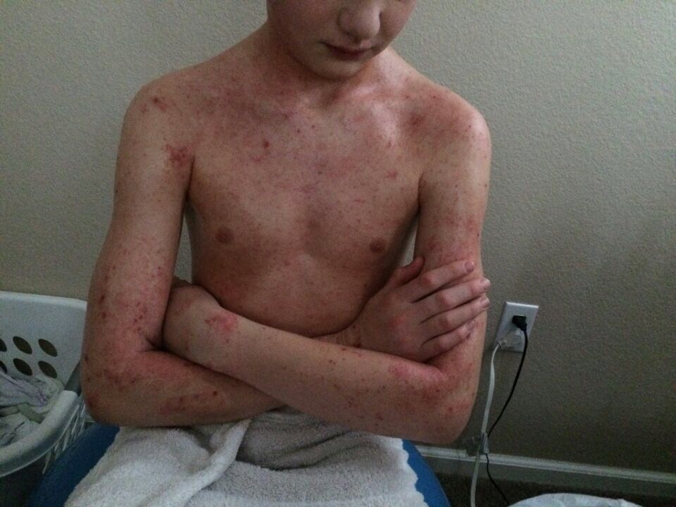 He was ill for months with a full body rash when my face was a festering mess.
