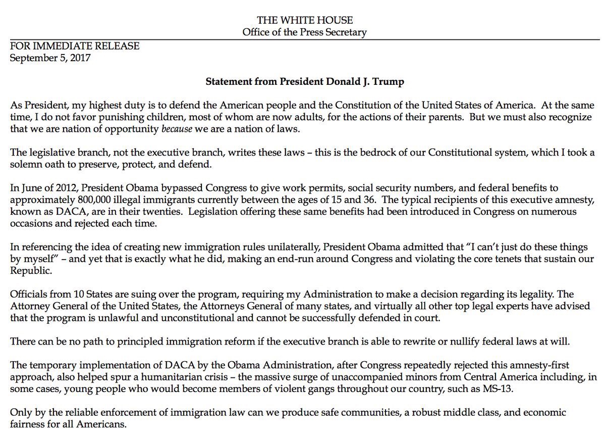 Sessions Announces Trump Has Ended DACA 9/5/17 The Rule of Law and the Constitution Win! @JennyHatch #Daca