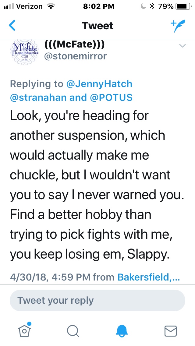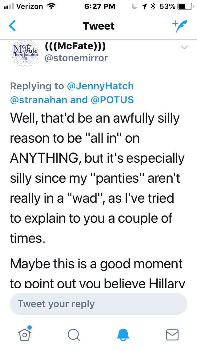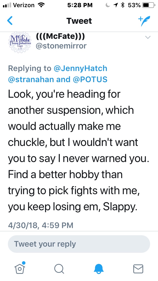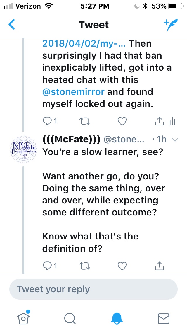 That Stonemirror dweeb who got me banned from Twitter a few weeks ago chimed in and we had a refreshing chat.