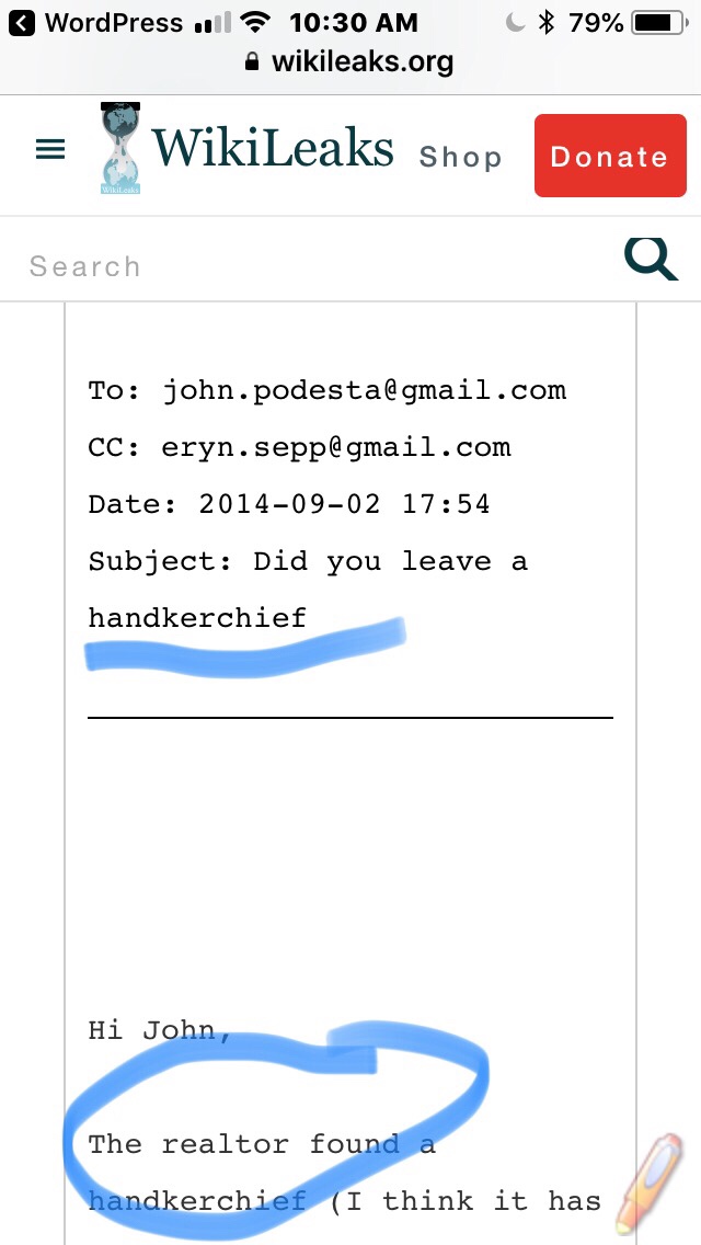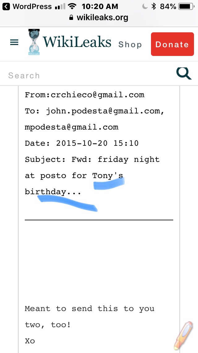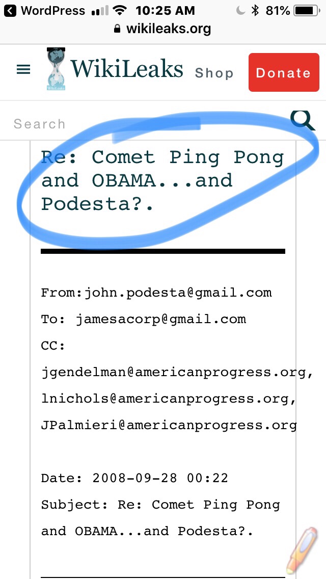I went to Wikileaks and screen grabbed some of John Podestas email correspondence and highlighted the weird stuff in blue.