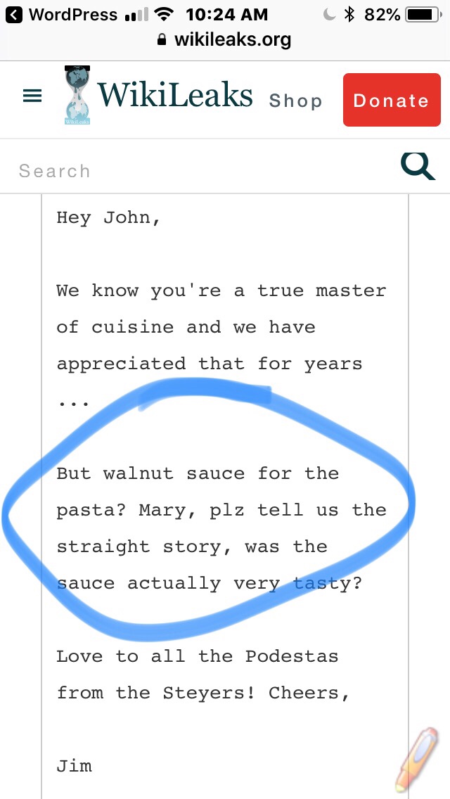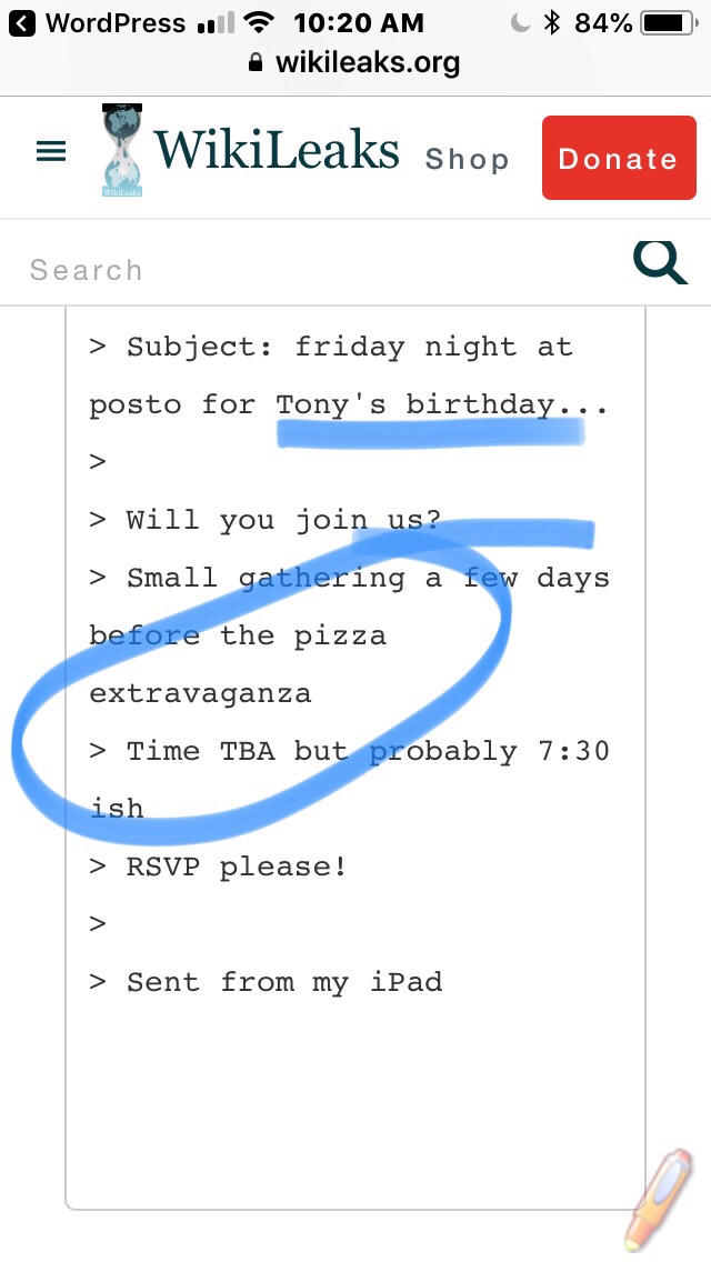 John Podestas Emails – Weird References to Food, especially PIZZA @JennyHatch