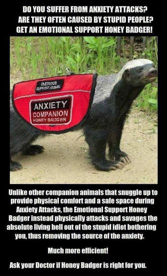 I would encourage all of those guilty of wiretapping and various and sundry assorted crimes to get a honey badger anxiety companion.