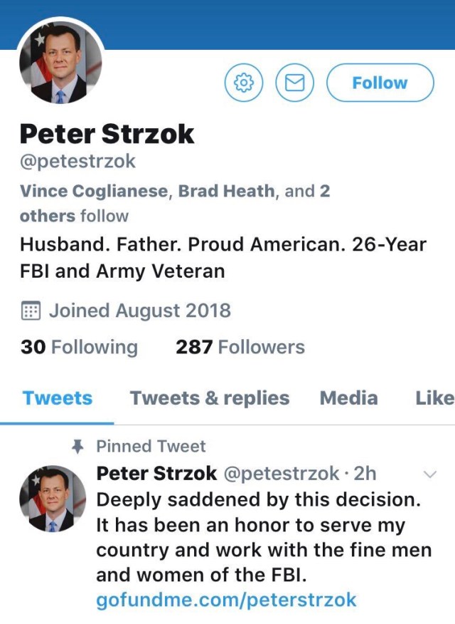 GREAT NEWS! Peter Strzok was fired by the FBI today! @JennyHatch