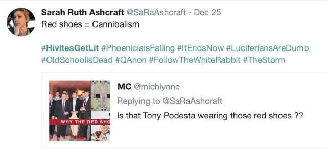 Red Shoes, as far as I know, indicate cannibalism. Some have said it just indicates pedophilia & cult membership. I acknowledge this is also possible & am open to the possibility that red shoes may not mean cannibalism specifically as I’ve said before, but just cult in general.