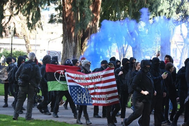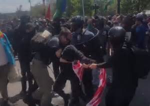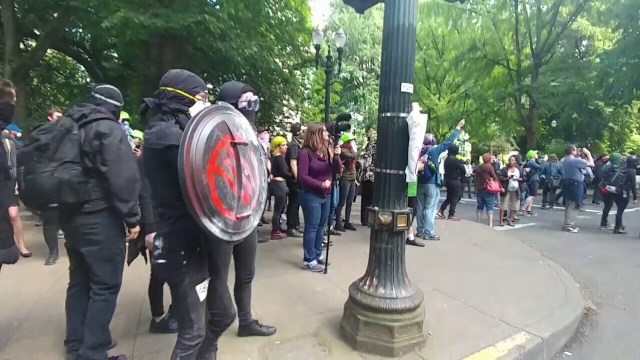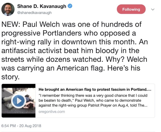 Antifa crack the skull of a democrat holding an American Flag @JennyHatch