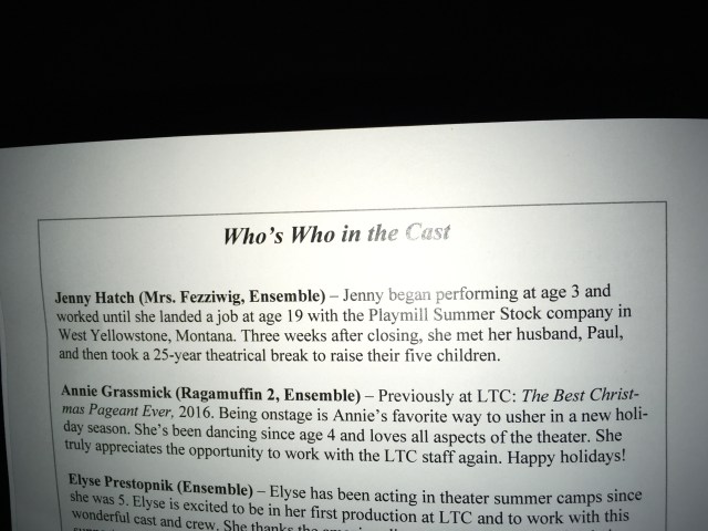 I am playing Mrs. Fezziwig in our local playhouses production of A Christmas Carol and also singing Christmas Carols at various points around the show.