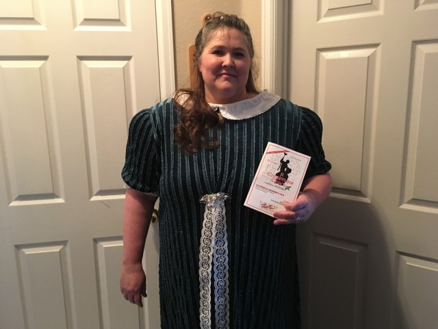 Here are a few photos from dress rehearsal… (I blinged out my dress with lace, brooch, and pearls after this run through).