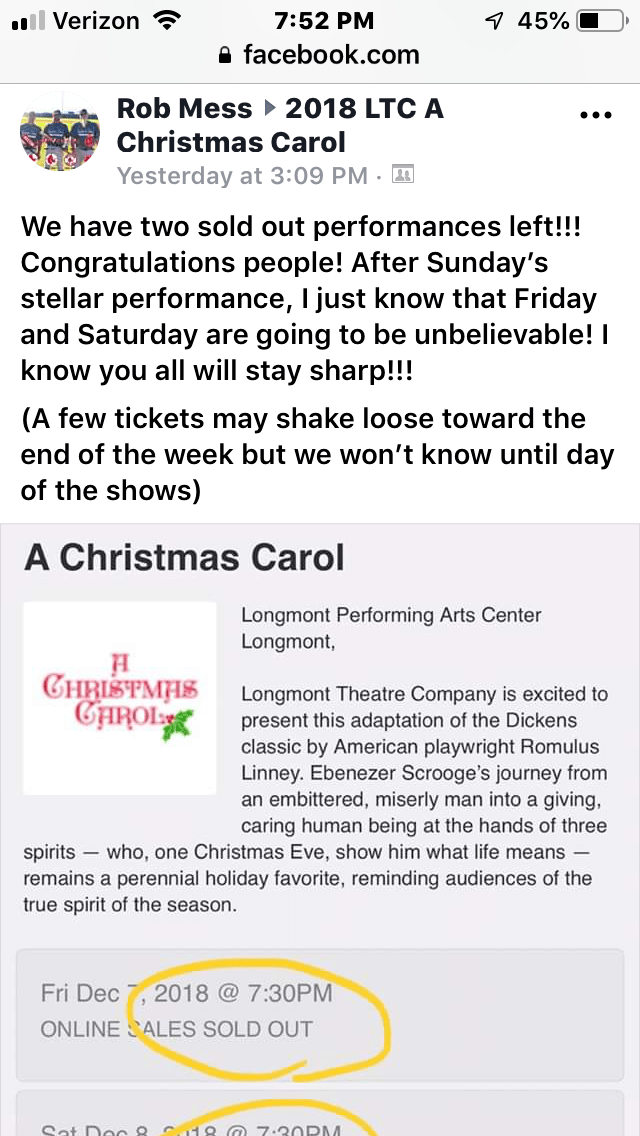 I was thrilled when the director tasked me with a solo of Silent Night during Tiny Tims death scene. I spent the whole afternoon rehearsing it today and decided to capture a cover on my phone.