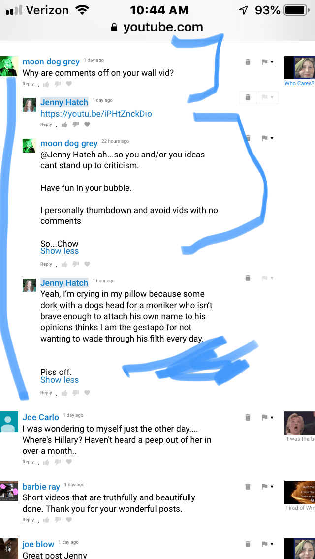 SCREEN GRAB FROM MY YOU TUBE COMMENTS PAGE